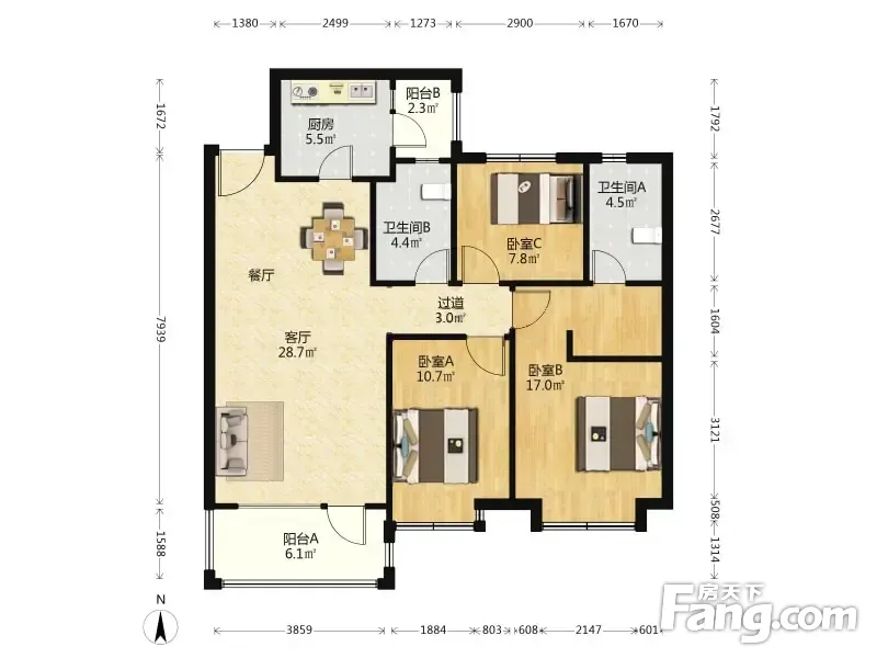 户型齐全,主打明卫,明厨三居