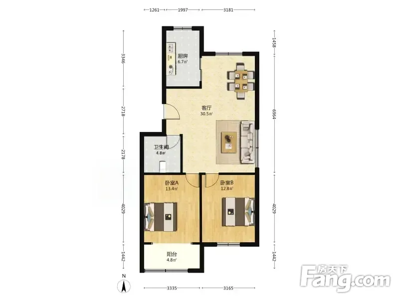 户型齐全,主打户型方正,明厨,主卧朝南二居