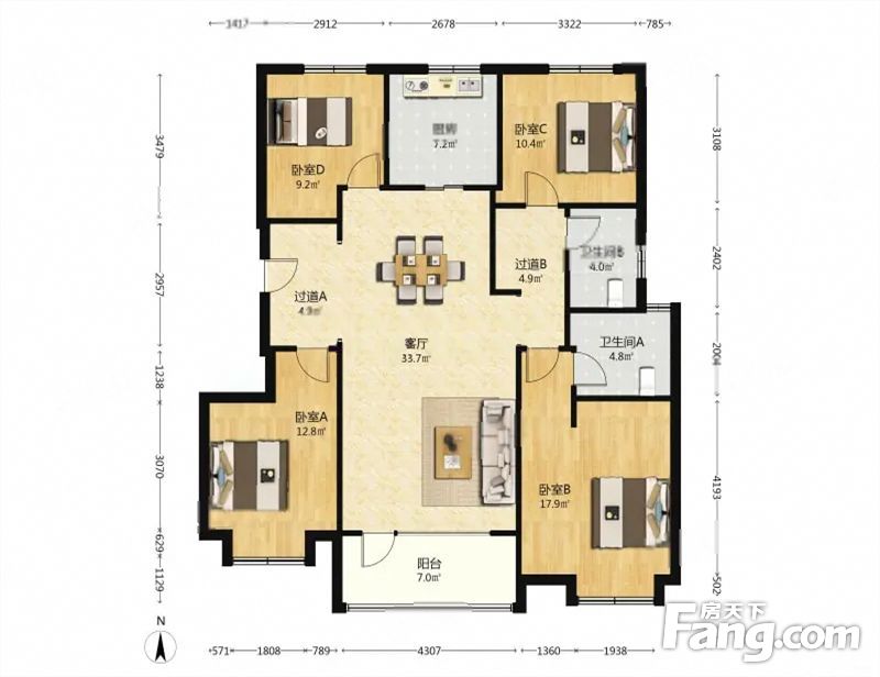 户型齐全,主打南北通透,客厅朝南三居