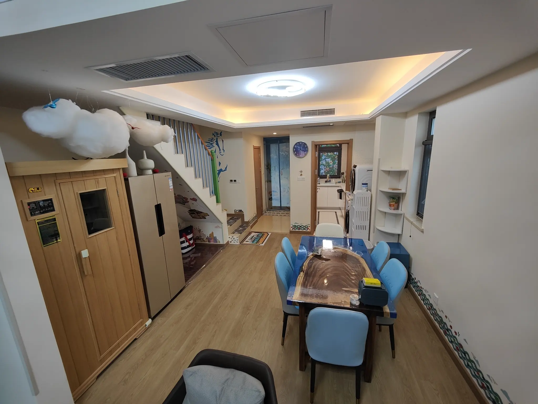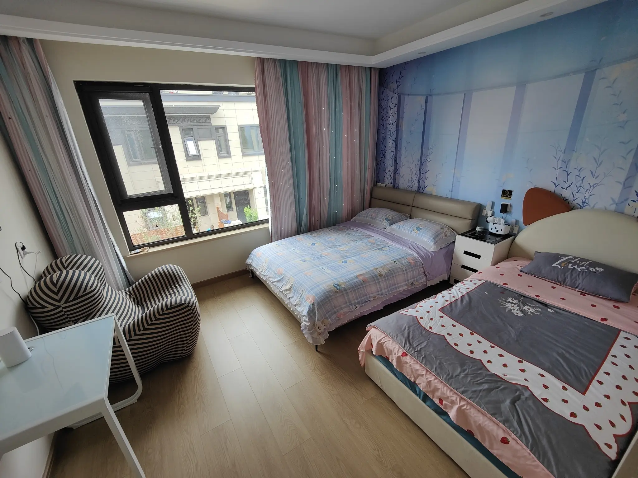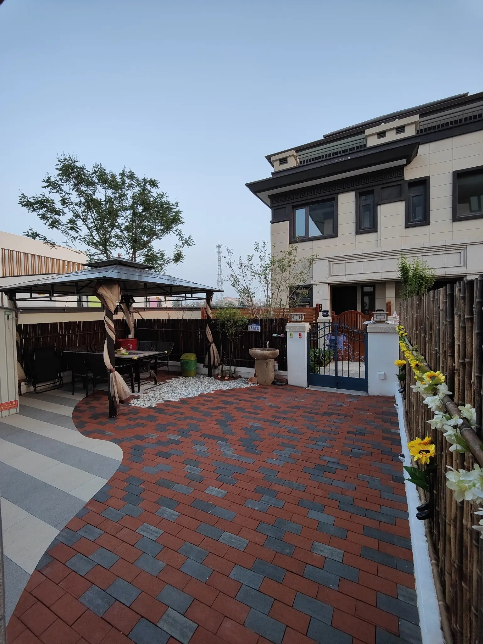 房子在孔雀城森屿海小区,环境优美,绿化充足;附近交通:北戴河高铁站、北戴河国际机场、京秦高速公路,小区周边配套设施齐全,离县城很近,有医院,奥莱也在建,也有业主餐厅,价格合理。距离海边不到二公里。是个联排边户,位置俱佳,房子布局合理舒适,一层大厅、饭厅和厨房,以及一个共用卫生间。二层南北两个卧室,都有自己独立的干湿分离卫生间,三层是大卧室,有个大的干湿分离卫生间,过道出去是大露台,可以封出一间房间。房子的院子九十平米,可以游乐可以储物,我已装了亭子、洗手池和淋浴喷头,还给孩子准备了大型滑梯和小船娱乐。地面也是花了很大精力,非常漂亮和结实,可以用十年没问题。因为离得太远,虽然不舍,但是真没有精力打理,希望真正喜欢的它的人拥有和维护。买的时候说是108平多,实际套内有近150,加上院子露台二百多平米。
