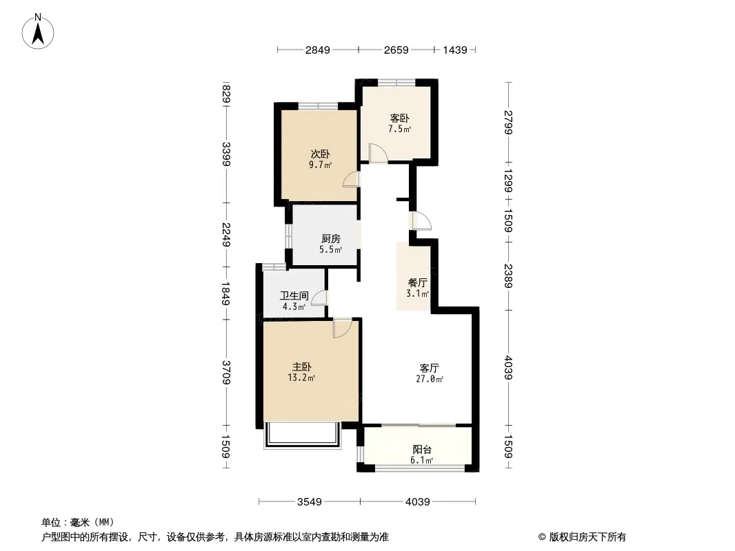 户型齐全,主打户型方正,卧室朝南三居