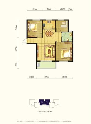 户型齐全,主打南北通透,客厅朝南三居