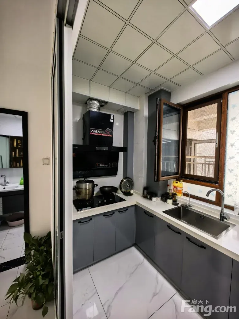 方正户型。中室,不把山,厨房有北窗户。南北通透。特别凉快。有天井露台。夏天可以烤肉。