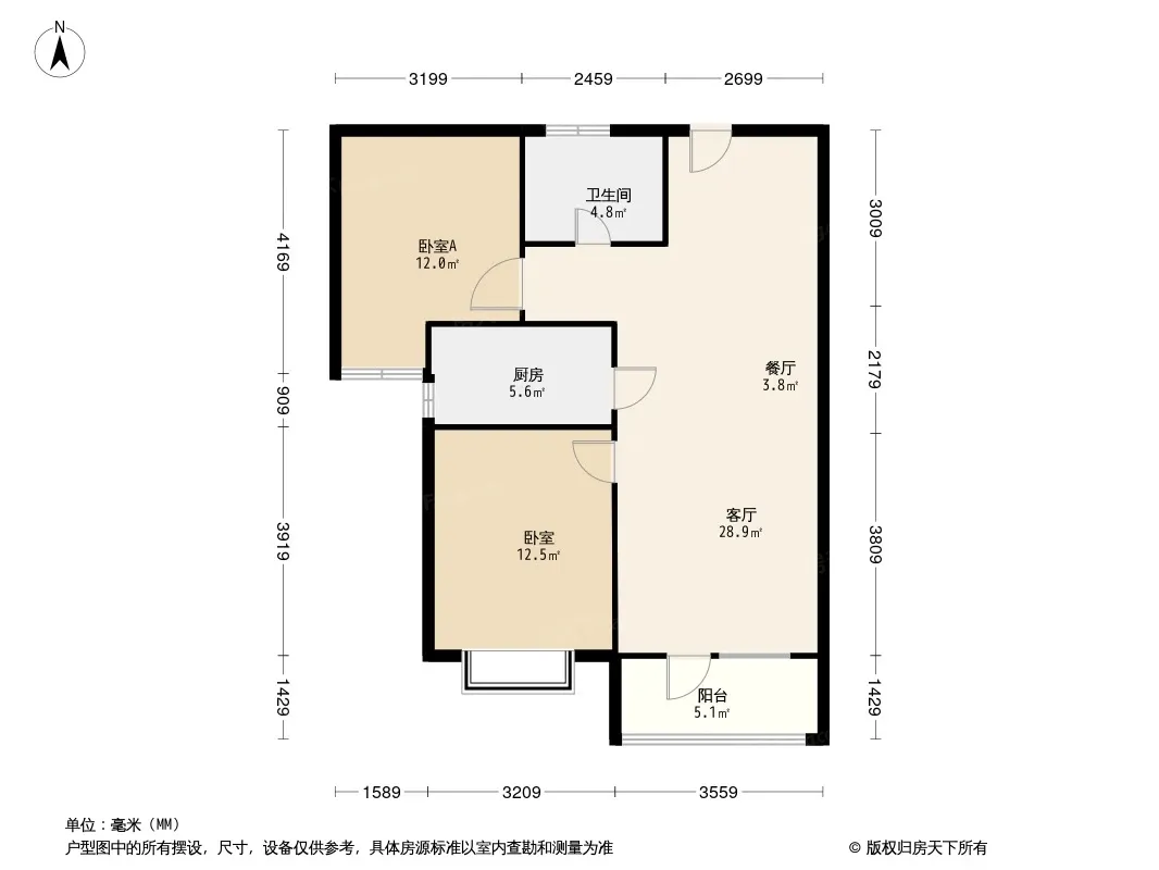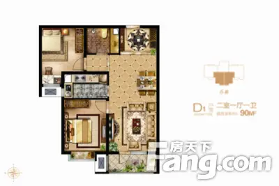 户型齐全,主打户型方正,客厅朝南,主卧朝南二居