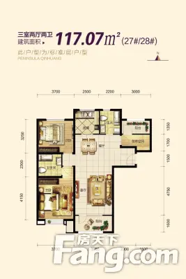 户型齐全,主打户型方正,卧室朝南三居