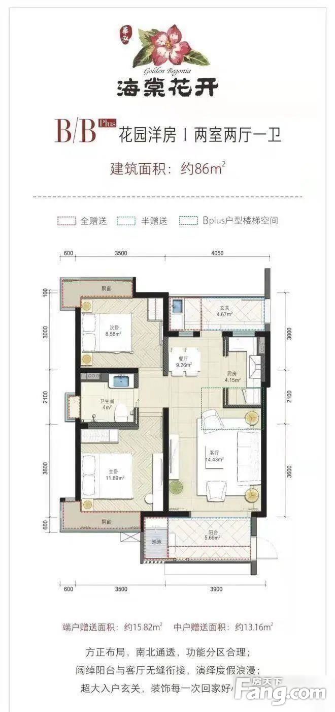 海棠花开户型主要有86平-87平的户型方正,高附赠空间的二居 、91平-92平的户型方正,动静分离,高附赠空间的三居 。