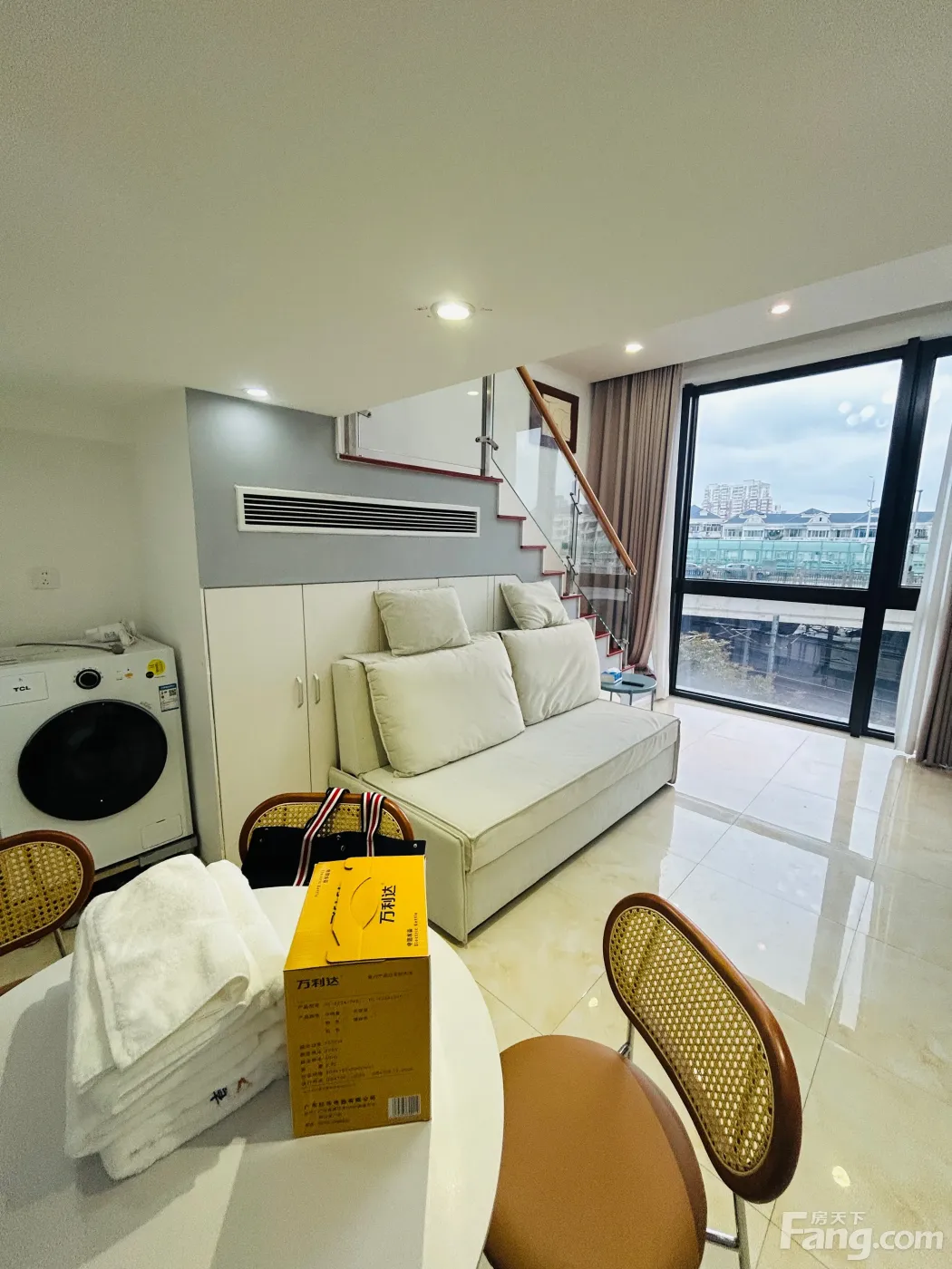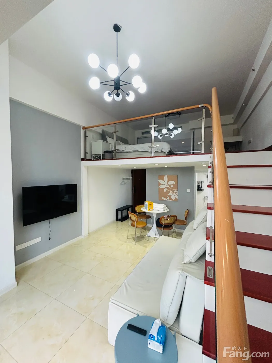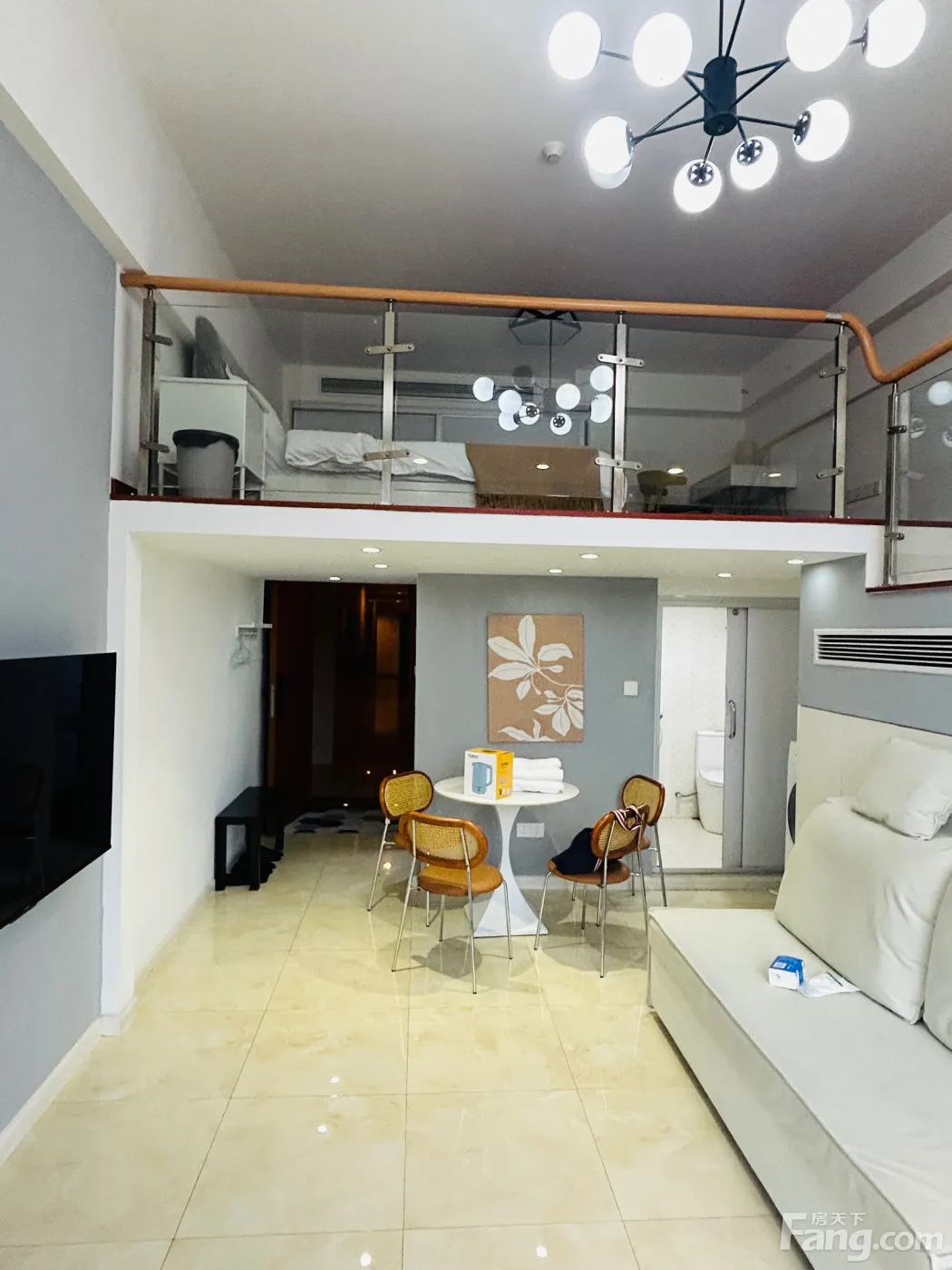 Loft结构,下层2米层高,上层1.6米层高。总高3.9米。精装修,拎包入住,家电全配。