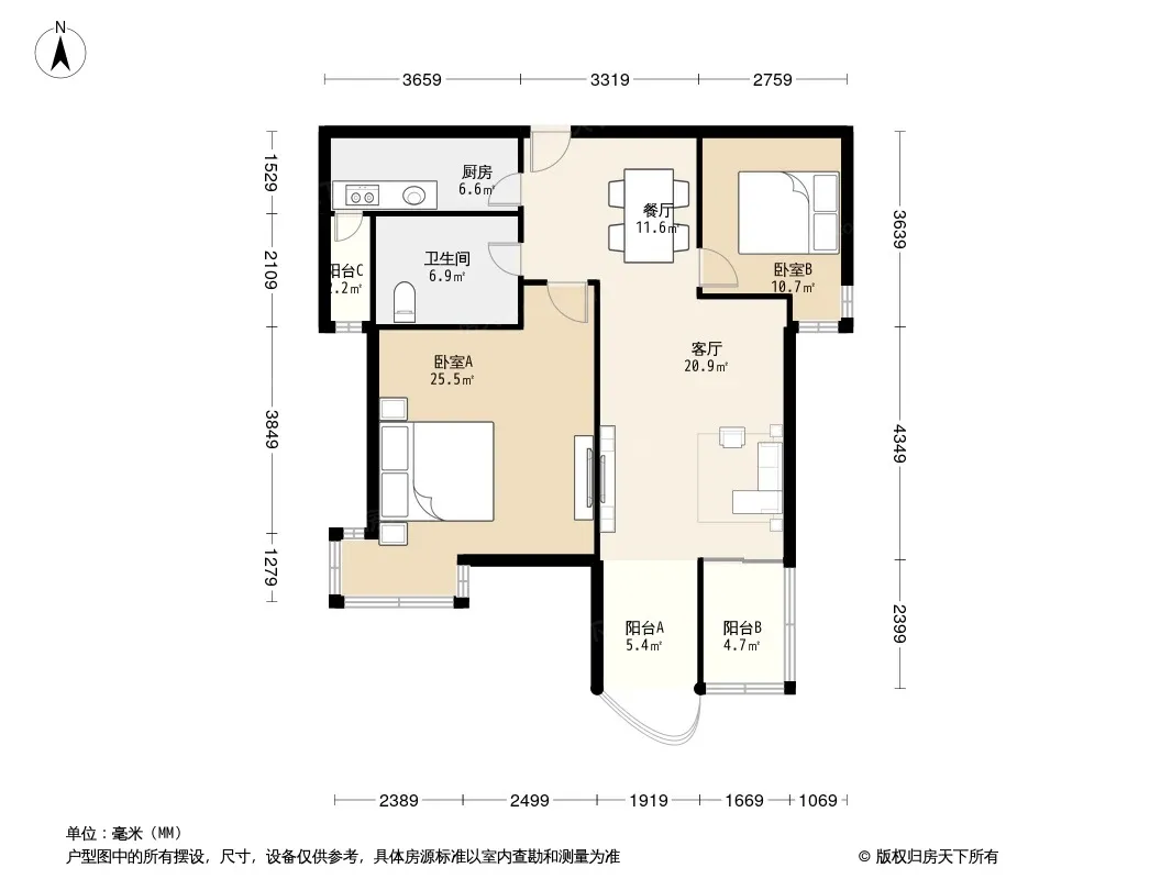 户型齐全,主打户型方正,客厅朝南,双阳台,双卧朝南二居