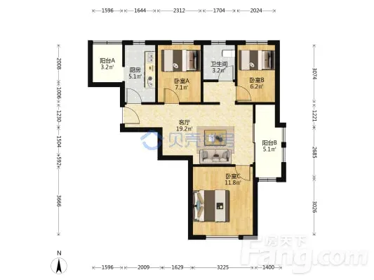 3室1厅1卫
