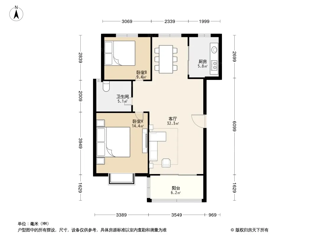 户型齐全,主打户型方正,明厨,明卫,主卧朝南二居