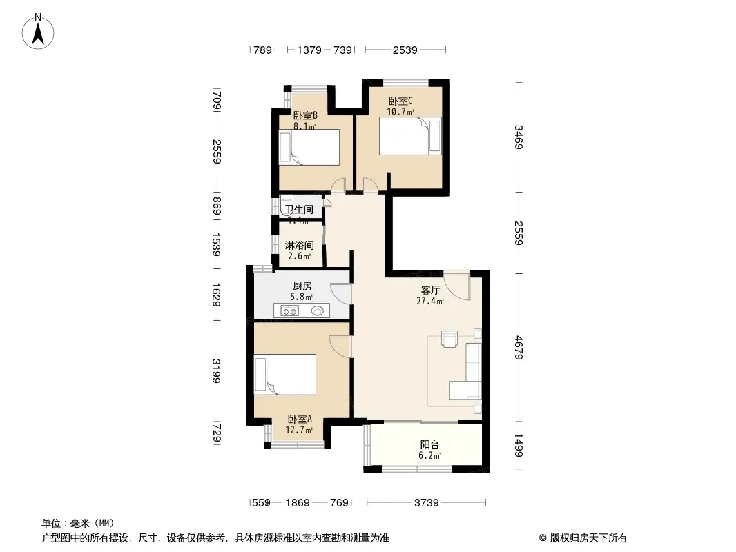 户型齐全,主打户型方正,明厨,明卫,主卧朝南三居