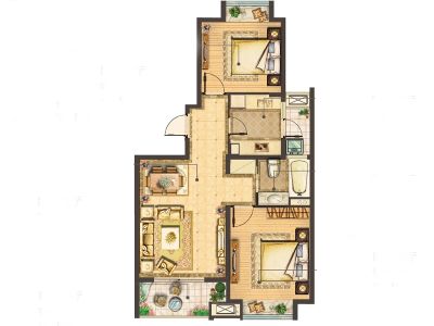 河畔艺墅户型主要有80平-88平的明卫,明厨,主卧朝南的二居 、88平-132平的户型方正,明厨,明卫,主卧朝南的三居 。