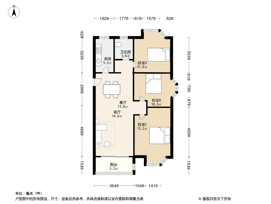 户型齐全,主打户型方正,明卫,明厨,双阳台,双卧朝南,主卧朝南三居