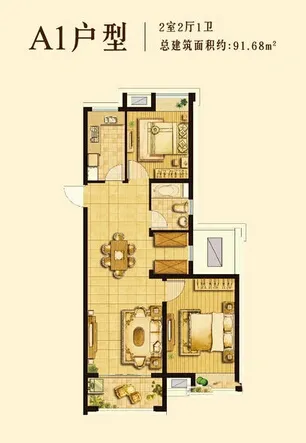 户型齐全,主打明卫,双卧朝南,主卧朝南二居