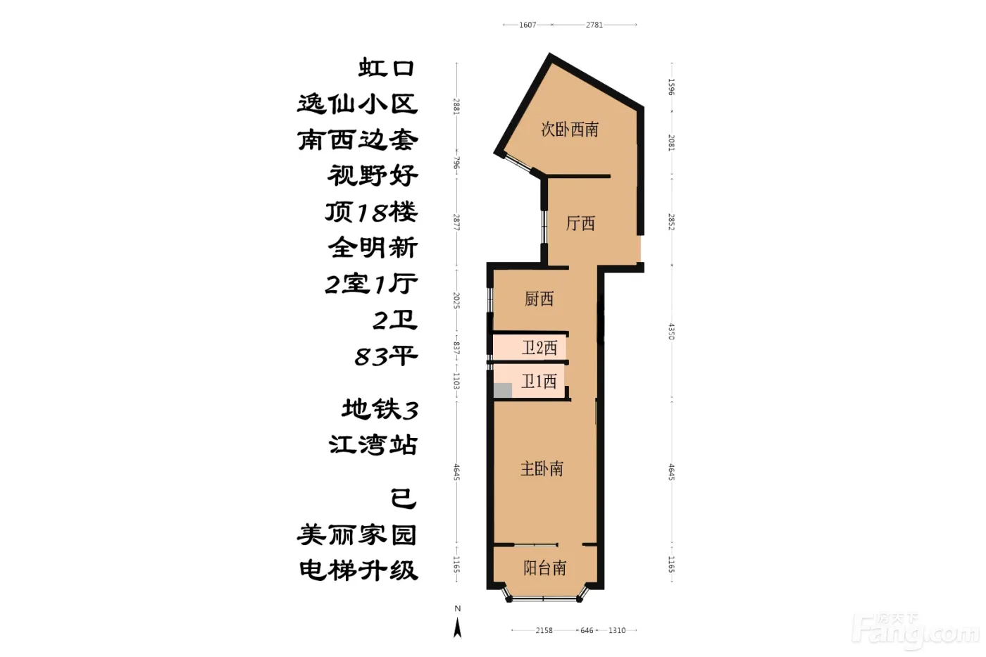 虹口200米地铁18楼全明2房1厅2卫新