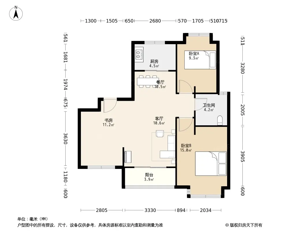 嘉定 莱英北郡 3室2厅 92.22㎡ 305万