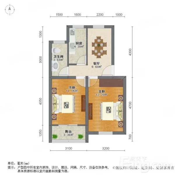 户型齐全,主打户型方正,明卫,明厨,客厅朝南,全明格局二居