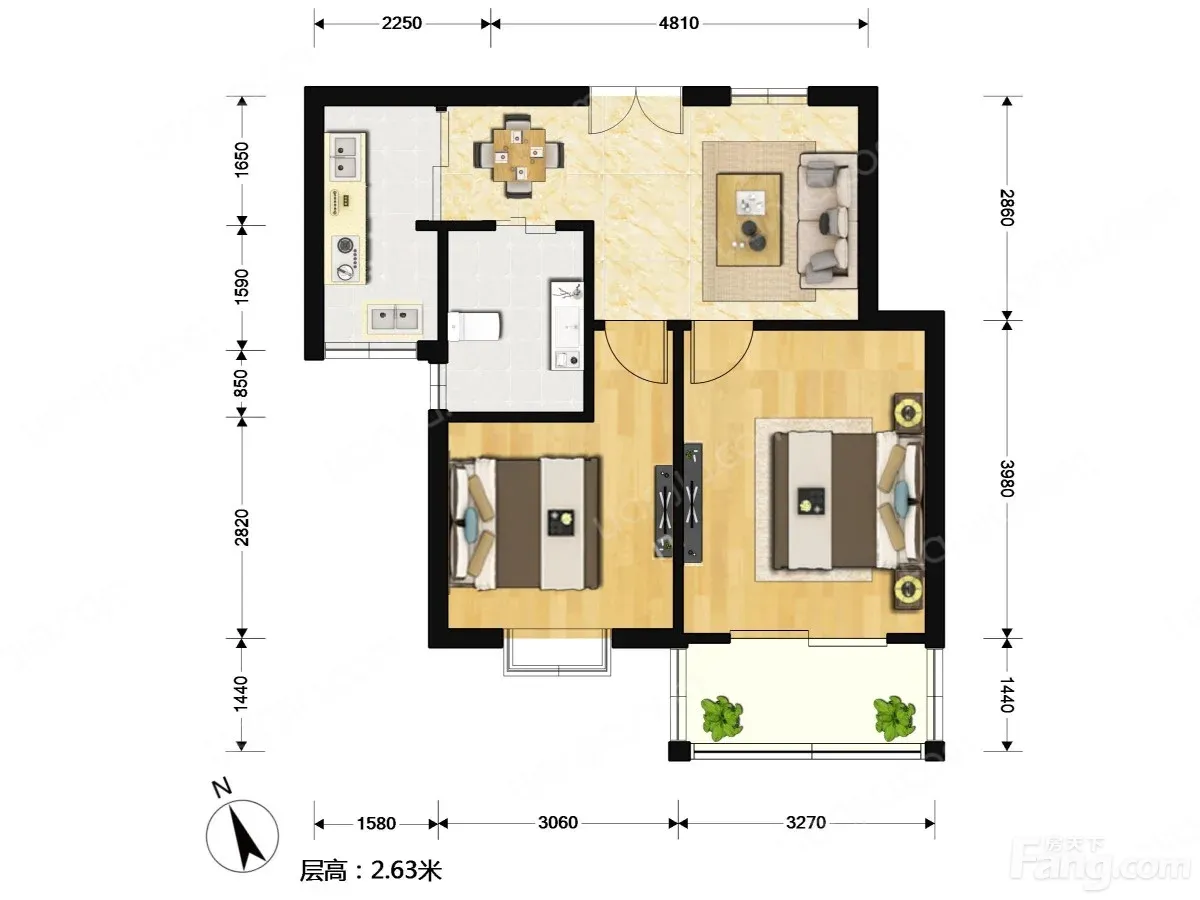 宝山 新梅绿岛苑 2室1厅 67.61㎡ 335万