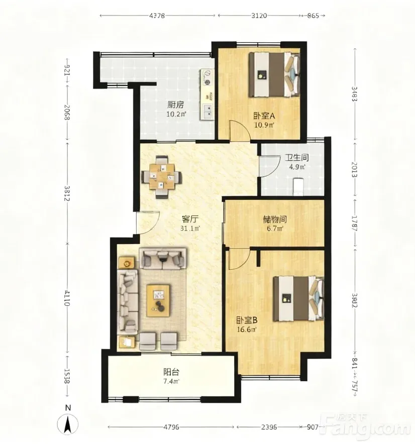 户型齐全,主打户型方正,明厨,明卫,主卧朝南二居