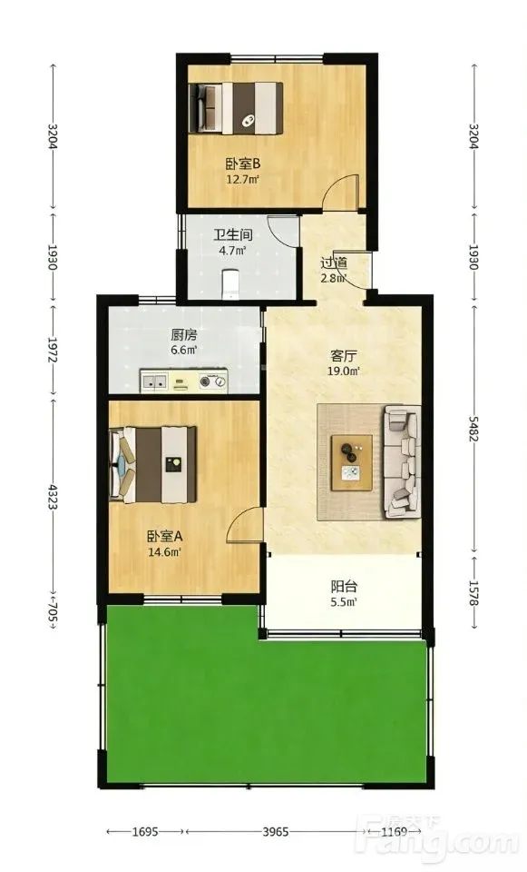 户型齐全,主打明厨,明卫,客厅朝南,主卧朝南二居
