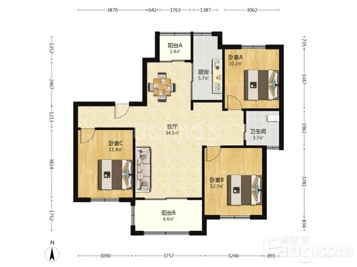 3室2厅1卫