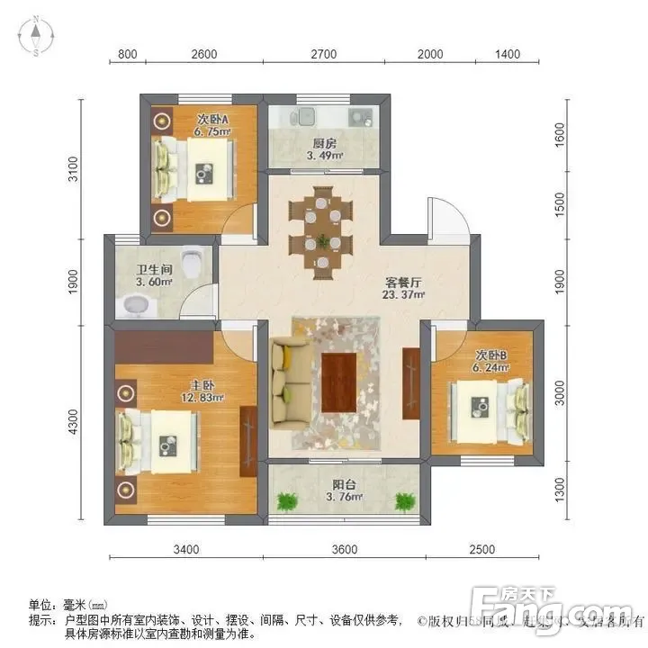 户型齐全,主打户型方正,明厨,明卫,主卧朝南三居