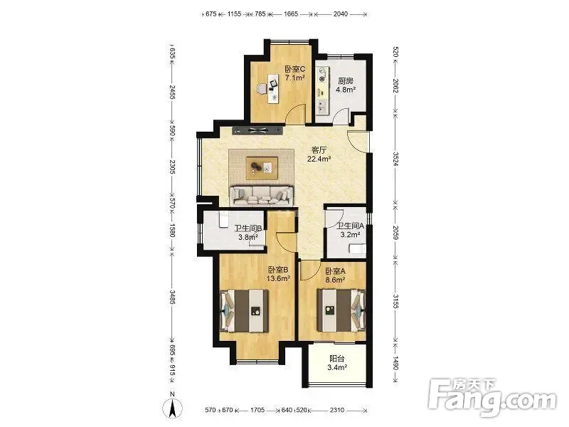 3室1厅2卫