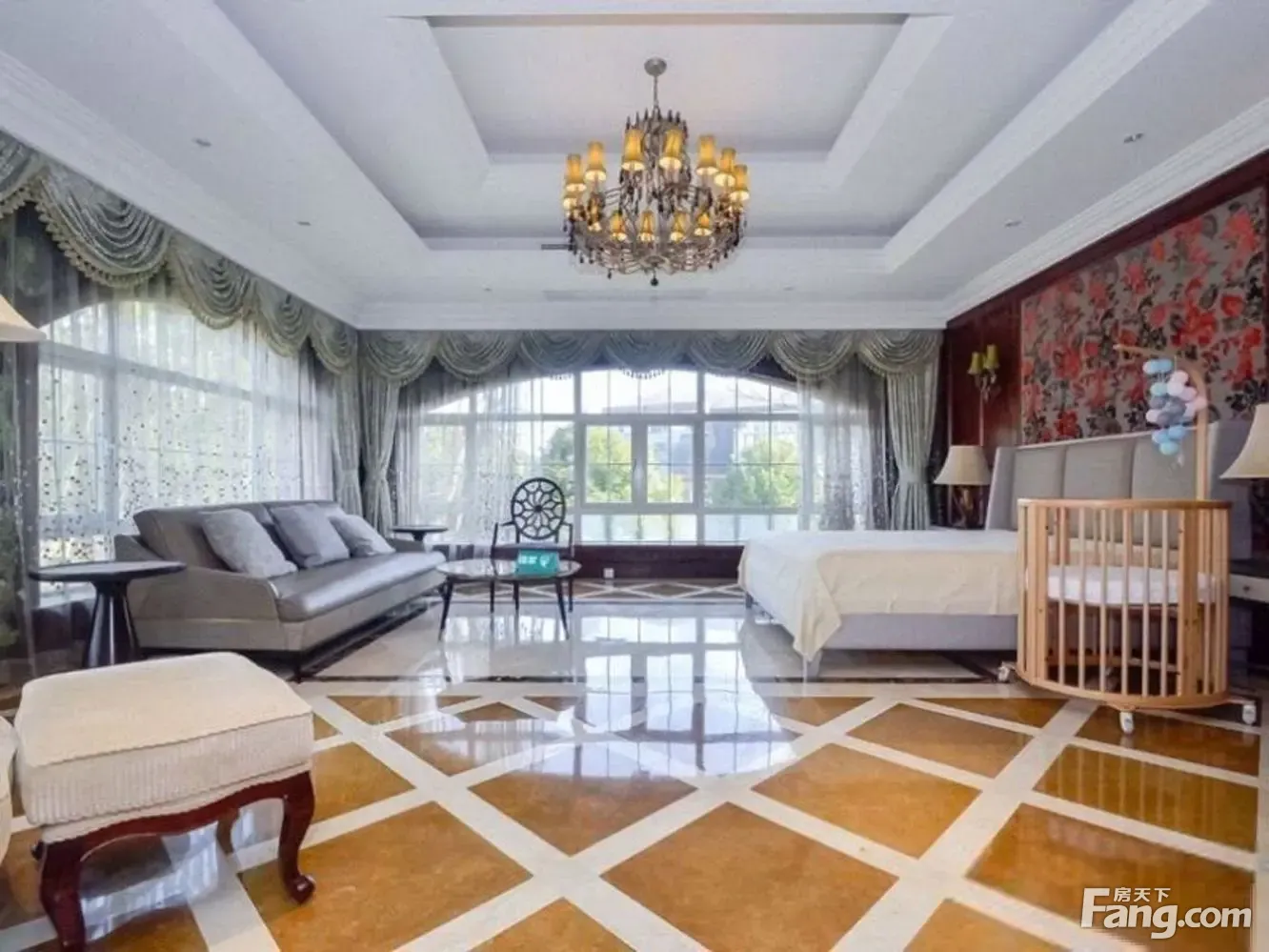 庄园式别墅占地1730平8房套房设计全明带欧式装修小区介绍1.小区为三期开发,是第三期,整个小区以欧式建筑风格为主。小区内的景观以人造河道形成,并以人造坡形成整个小区的立体感。2.别墅外立面采用全石材建造,给人一种古典欧式的感觉。房屋采用大面积的窗户增加采光度,挑空的客厅感觉十气派。户型介绍8个房间全是套房带独立衣帽间,其中6房朝南,1楼老人房。二楼4房套房,三楼3套房。装修近千万。带私家游泳池。占地1737平临河景观房周边配套1.此房所在位置购物方便,小区自带班车,北门就是商场.亚繁亚乐城,生活购物为一体,迪卡侬,永辉。2.家乐福,和绿地金域广场,;3.小区南门口菲索国际。