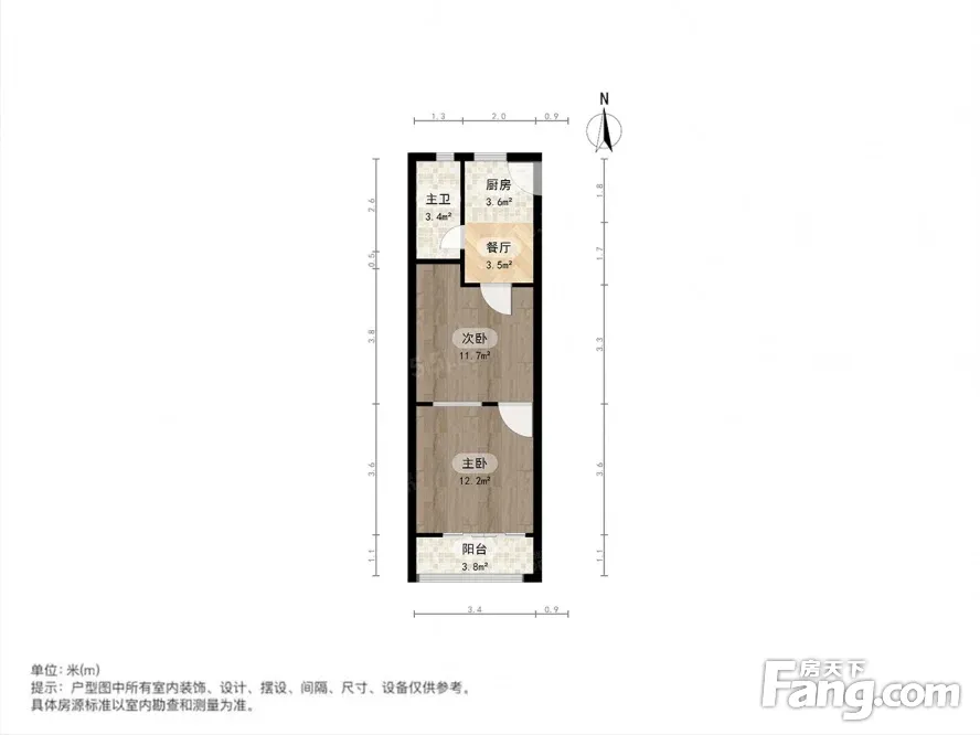主卧朝南带阳台,有客厅,厨卫朝北有窗户,