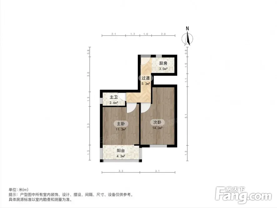 两房朝南,主卧有阳台,厨卫朝北全明有窗、