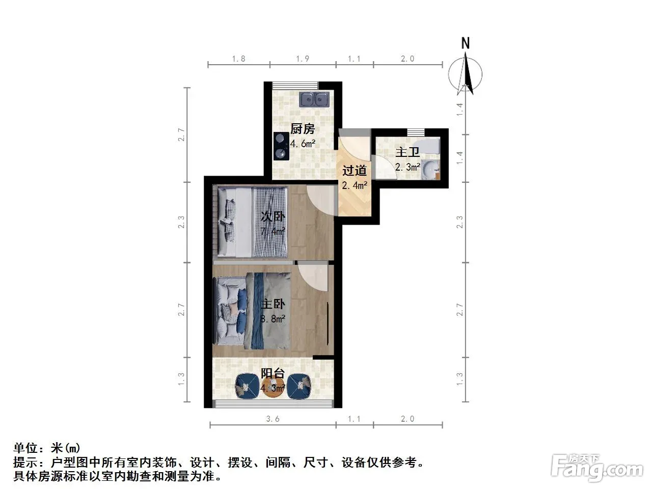 主卧朝南带阳台,带有厅,可以做个小两房,