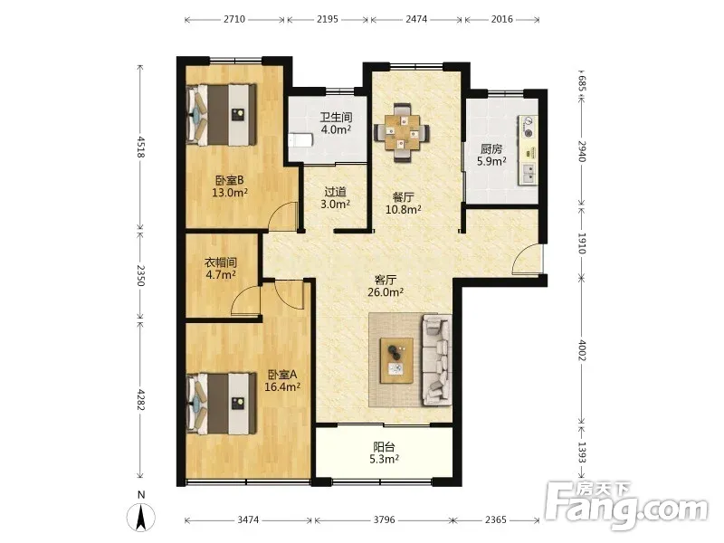 户型齐全,主打户型方正,独立衣帽间,明厨,明卫,客厅朝南,双阳台二居