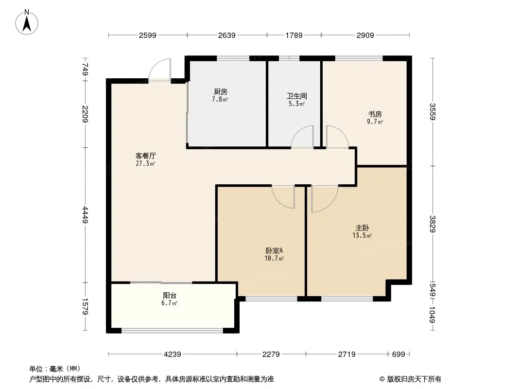 户型齐全,主打南北通透,全明格局三居