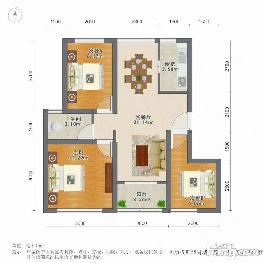 3室2厅1卫