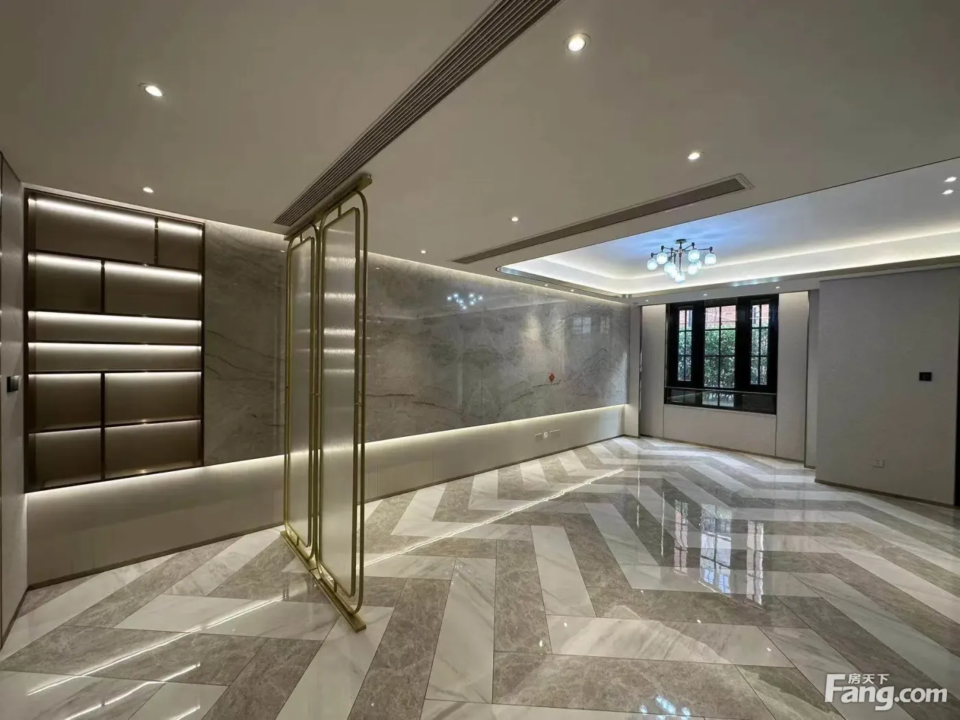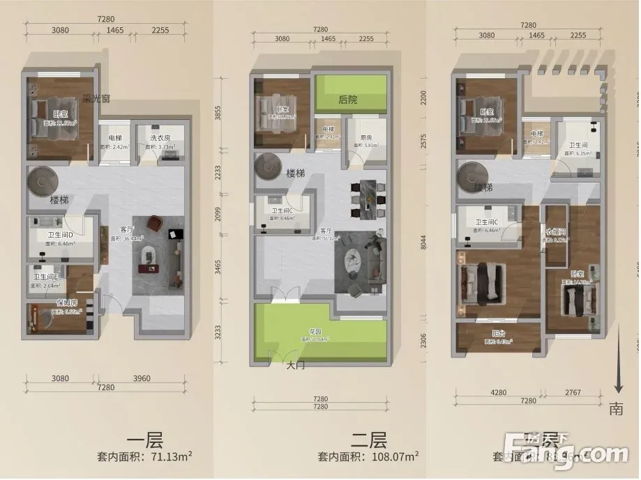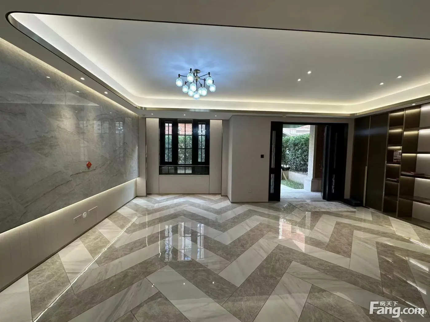 面积313,地上2层,地下1层,做了6房2厅5卫!开发商一手新装修,买进未住过!带南北双花园!