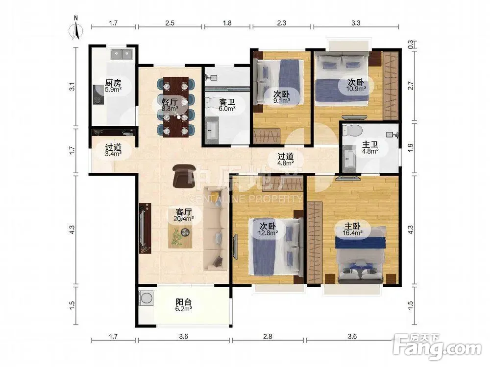 户型齐全,主打南北通透,户型方正,客厅朝南三居