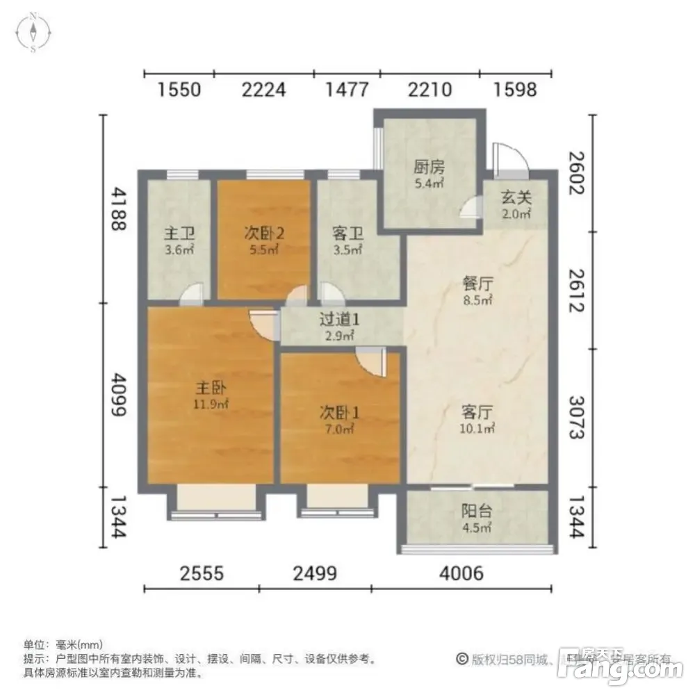户型齐全,主打南北通透,干湿分离三居