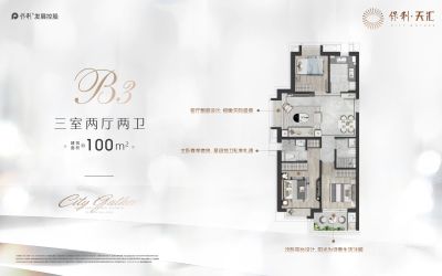 保利·天汇户型主要有100平-100平的南北通透,干湿分离的三居 、138平-162平的户型方正,动静分离的四居 。