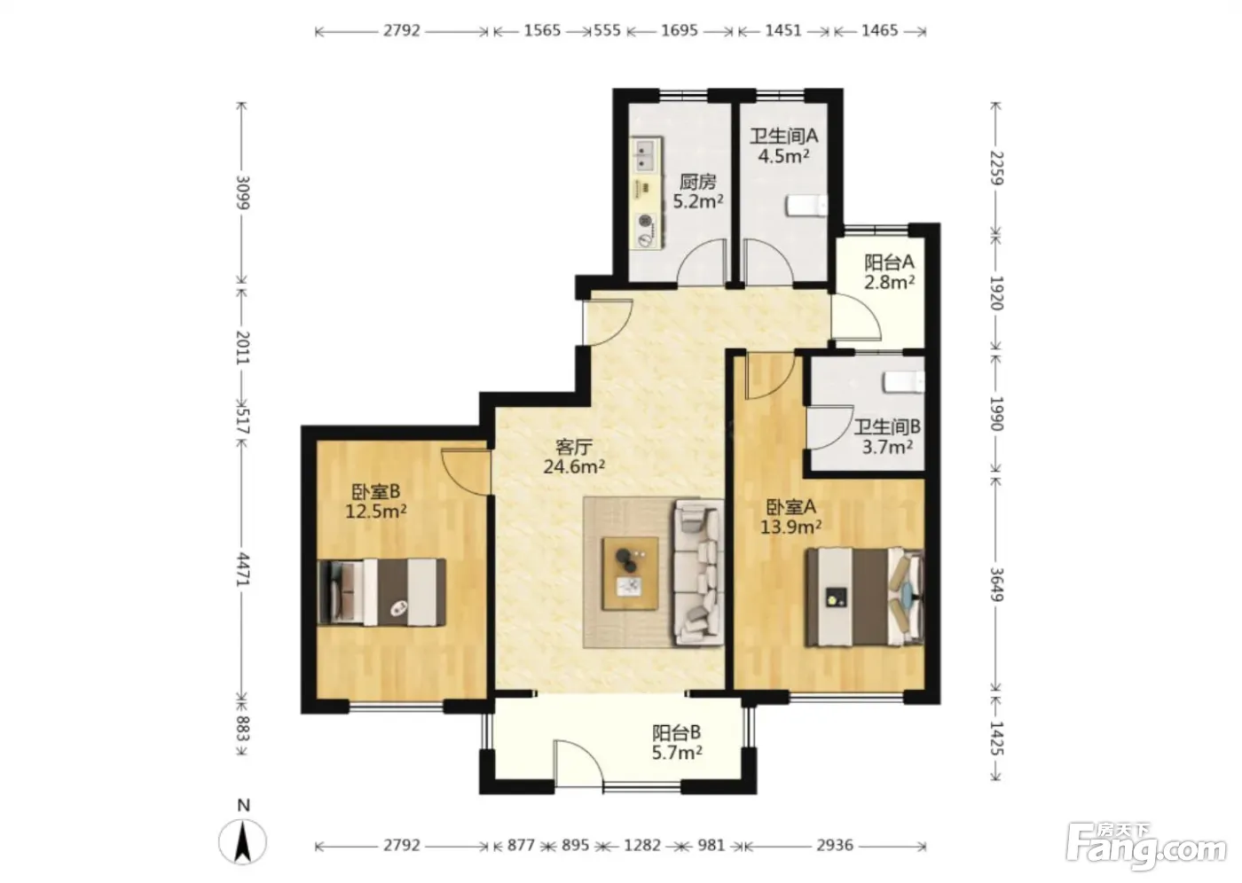 2室1厅2卫
