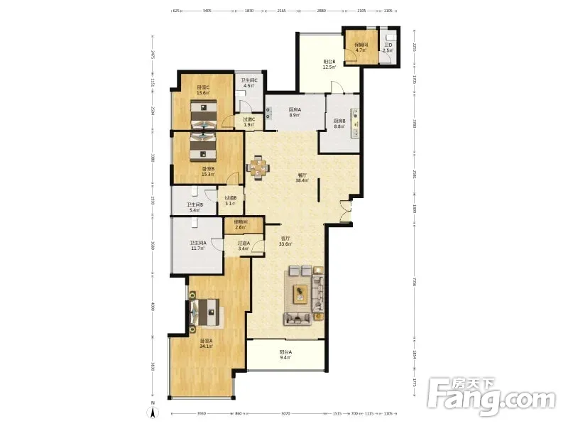 房屋拥有相对宽松的尺寸,布局通透,动静分离,设计豪华