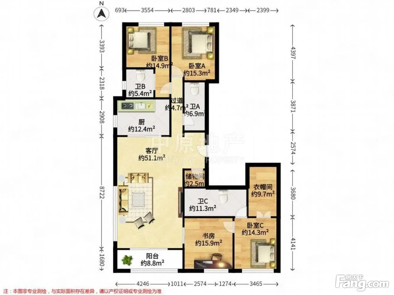 户型齐全,主打露台,南北通透,主卧带卫,带衣帽间,卧室带阳台三居