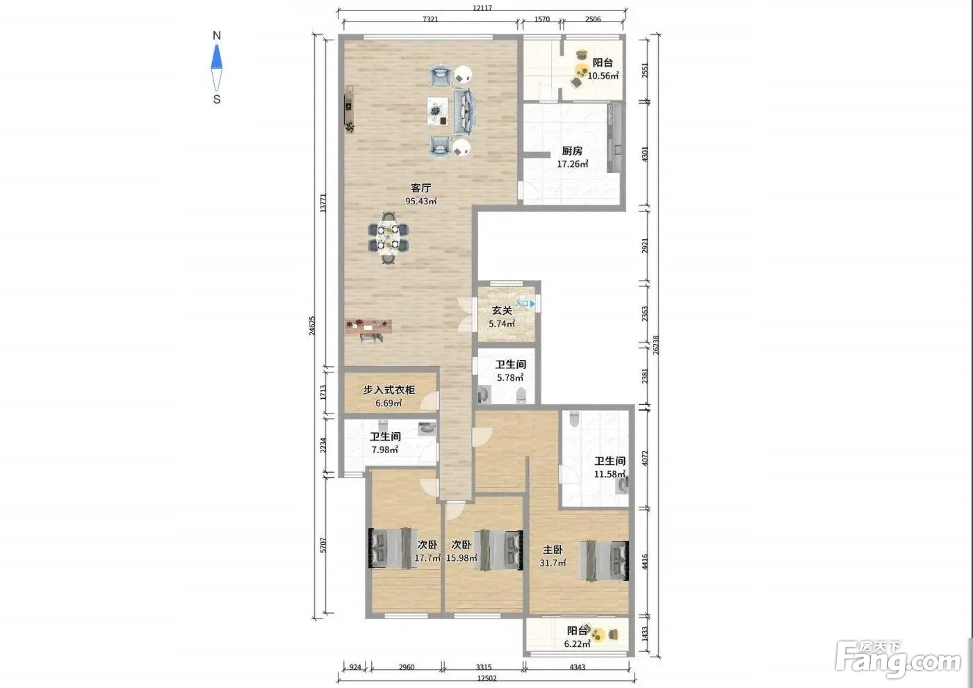 户型齐全,主打明卫,客厅朝南,双阳台三居