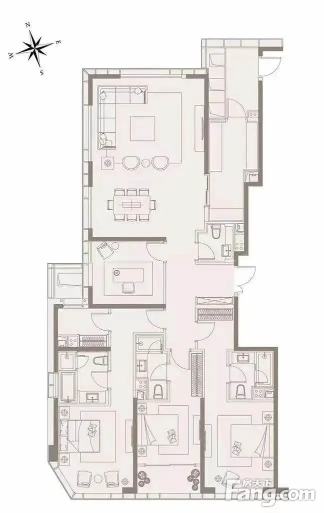 231平大4房!3个套房朝南,书房朝西!房间朝南正看小区花园景观!15米长大客厅!落地窗,采光视野好!