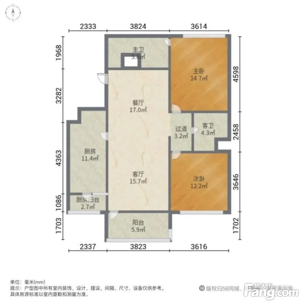 户型齐全,主打户型方正,双阳台,主卧朝南二居