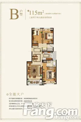户型齐全,主打户型方正,明卫,明厨,主卧朝南三居