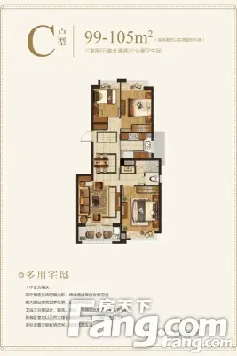 建发公园首府户型主要有99平-120平的户型方正,明卫,明厨,主卧朝南的三居 、153平-153平的南北通透的四居 。