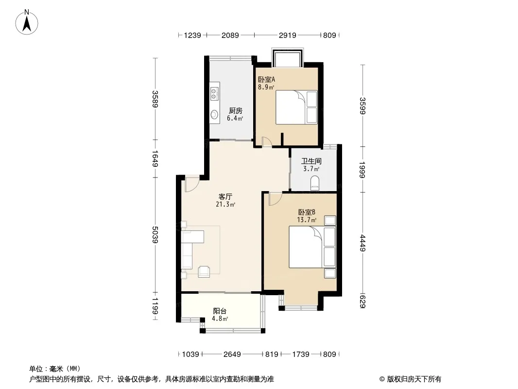 户型齐全,主打户型方正,明卫,明厨,客厅朝南二居