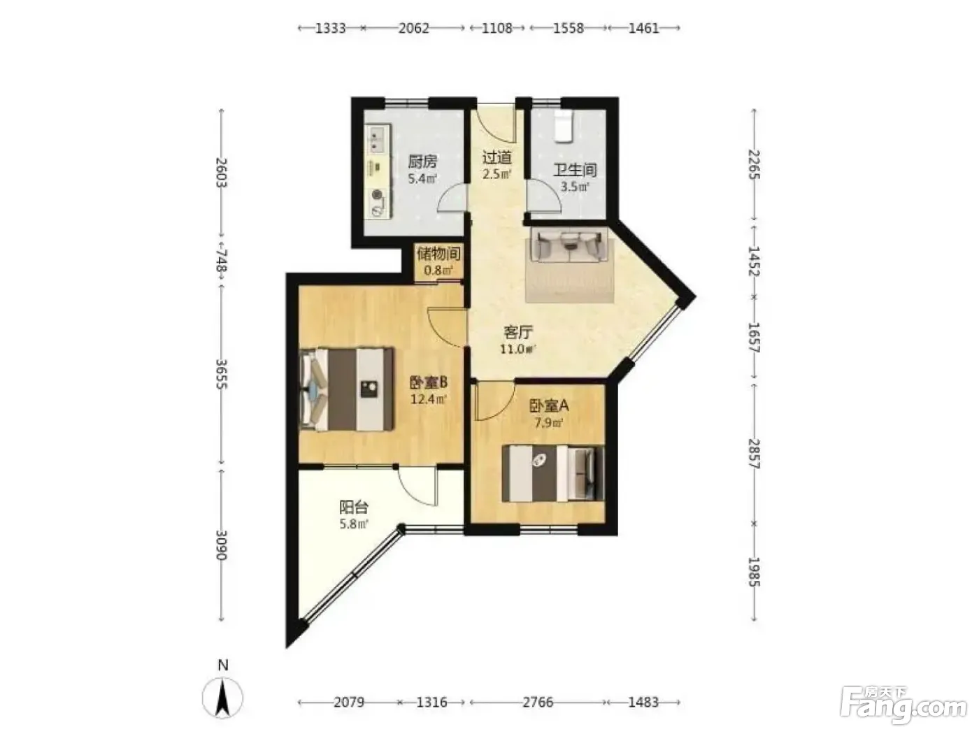 2室1厅2卫