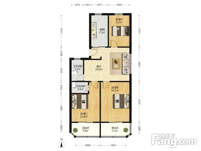 3室1厅2卫