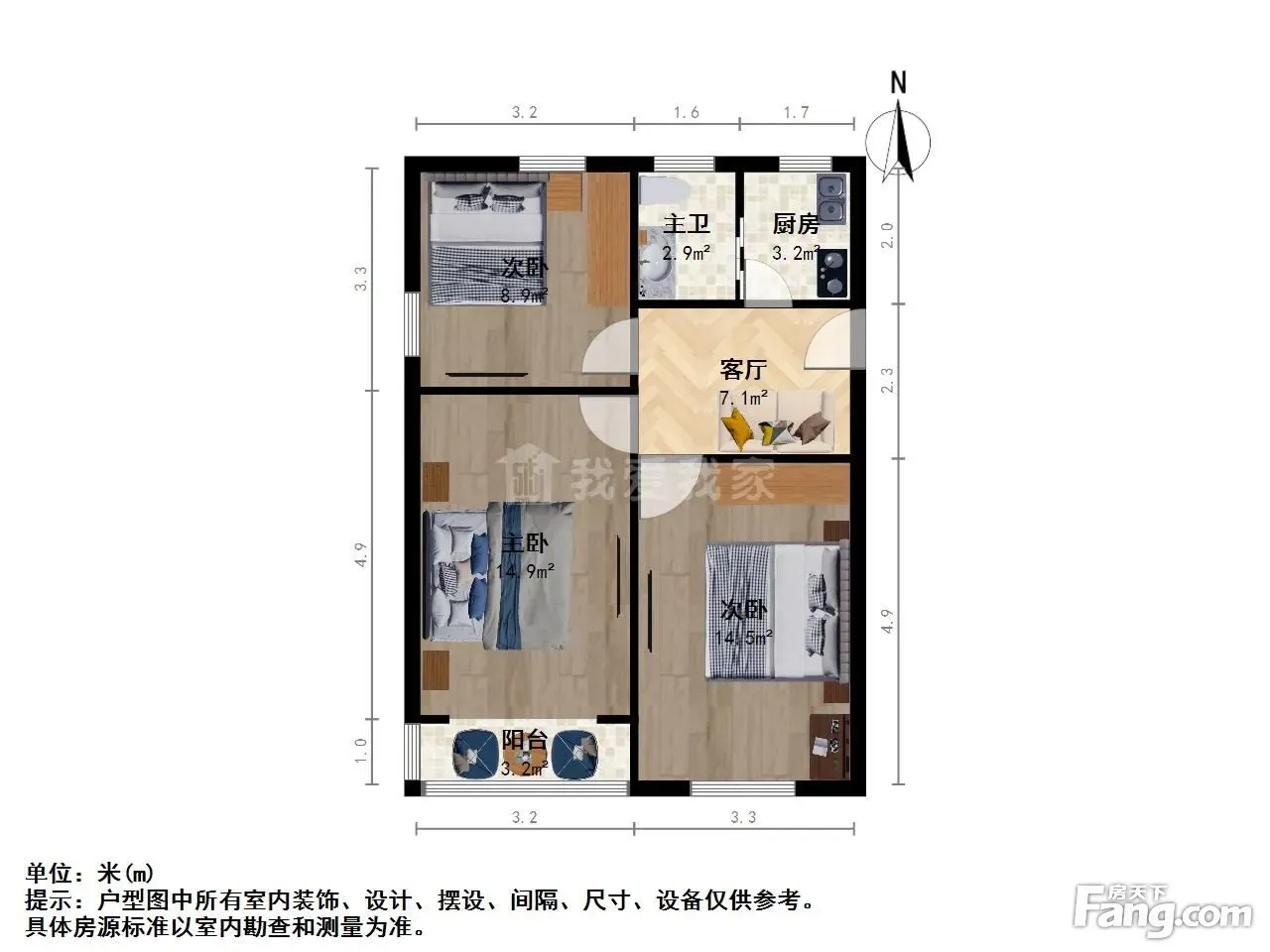 户型齐全,主打明厨,客厅朝南,主卧朝南三居